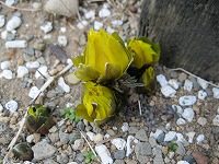 福寿草が黄色い蕾をつけていました。