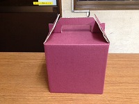 色のついたダンボールで、持ち手をつけた個性的なダンボール