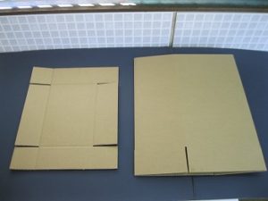 フラットな状態なので、中身をいれてから半分を組み立てれば高く持ち上げることなく梱包できます。