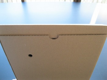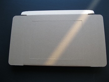 箱が平たい物の梱包ですが形状を上下差し込み式形状にし